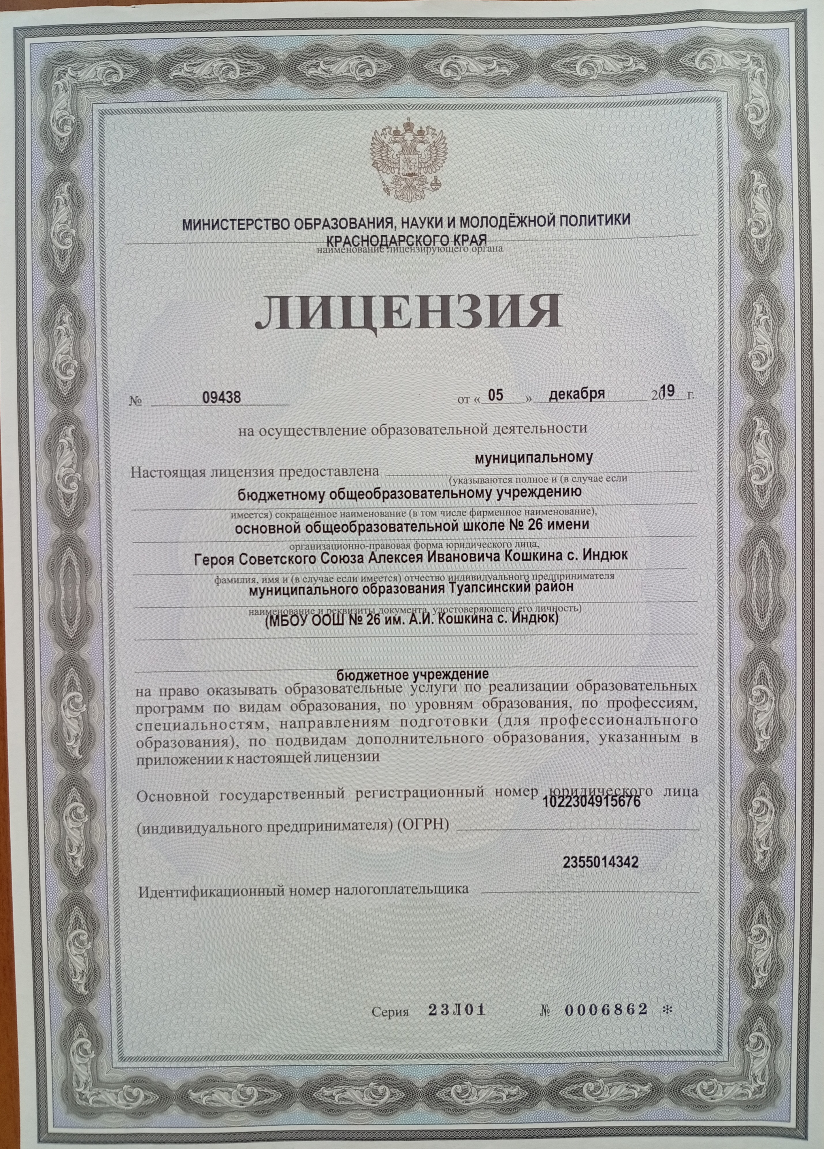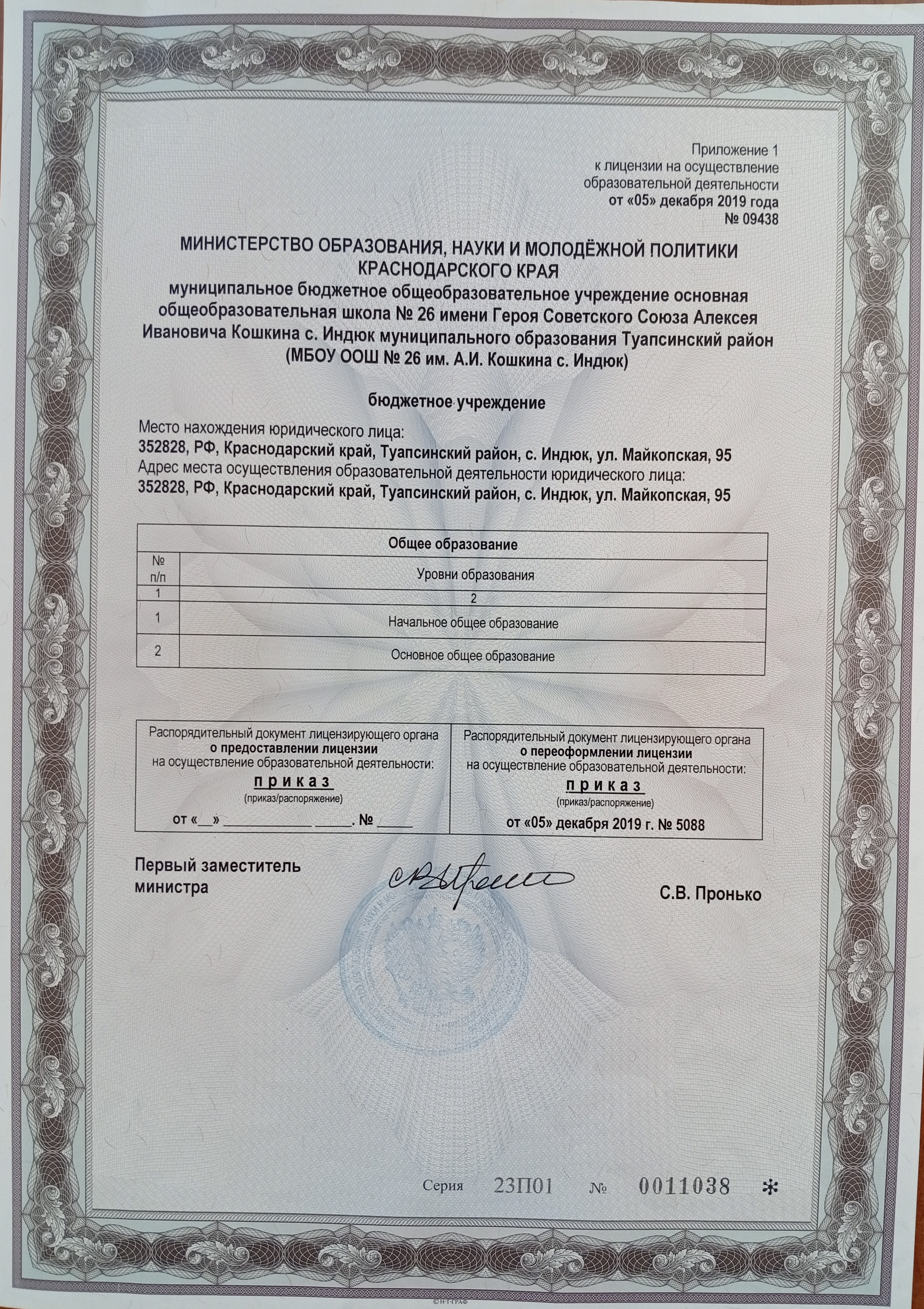 По состоянию на 01.09.2025 г. предписаний органов, осуществляющих государственный контроль (надзор) в сфере образования в МБОУ ООШ № 26 с. Индюк не поступало.
